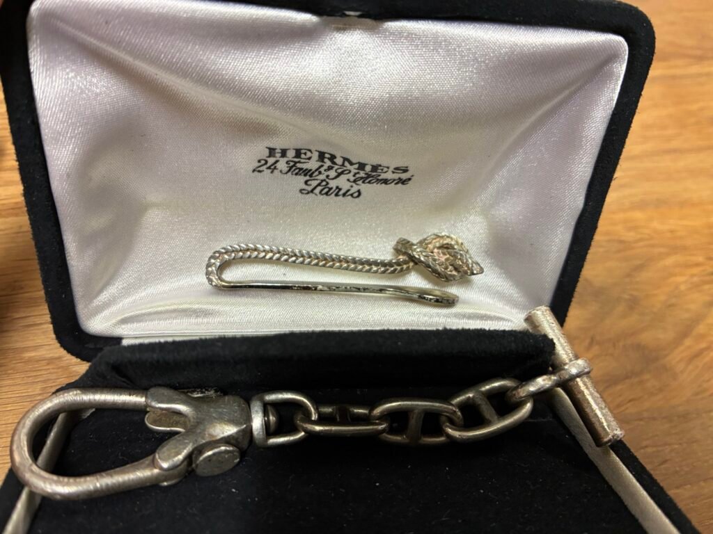 https://www.ricardo.ch/fr/a/original-hermes-schloss-anhaenger-schluesselanhaenger-1315134876/ - 复古爱马仕银质领带夹(800银)